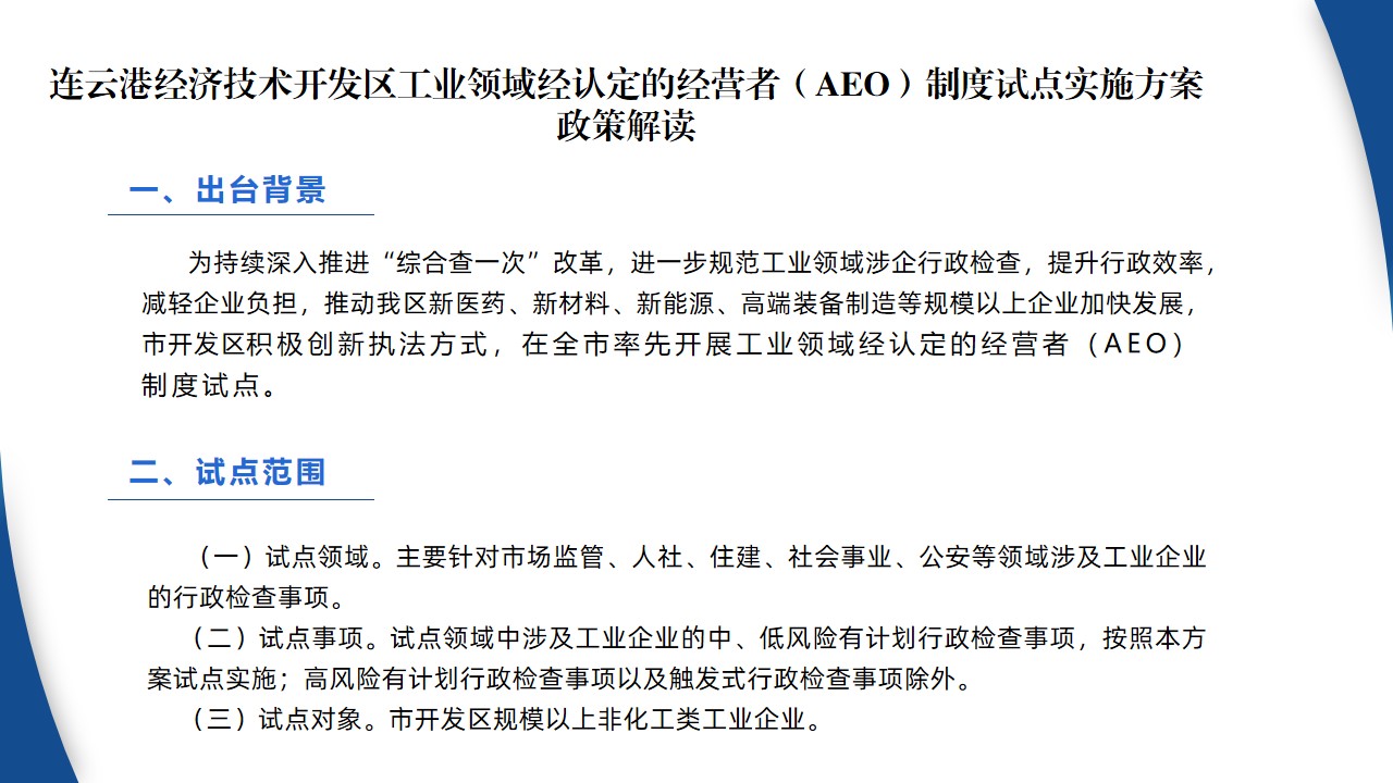 解读:连云港经济技术开发区工业领域经认定的经营者(AEO)制度试点实施方案